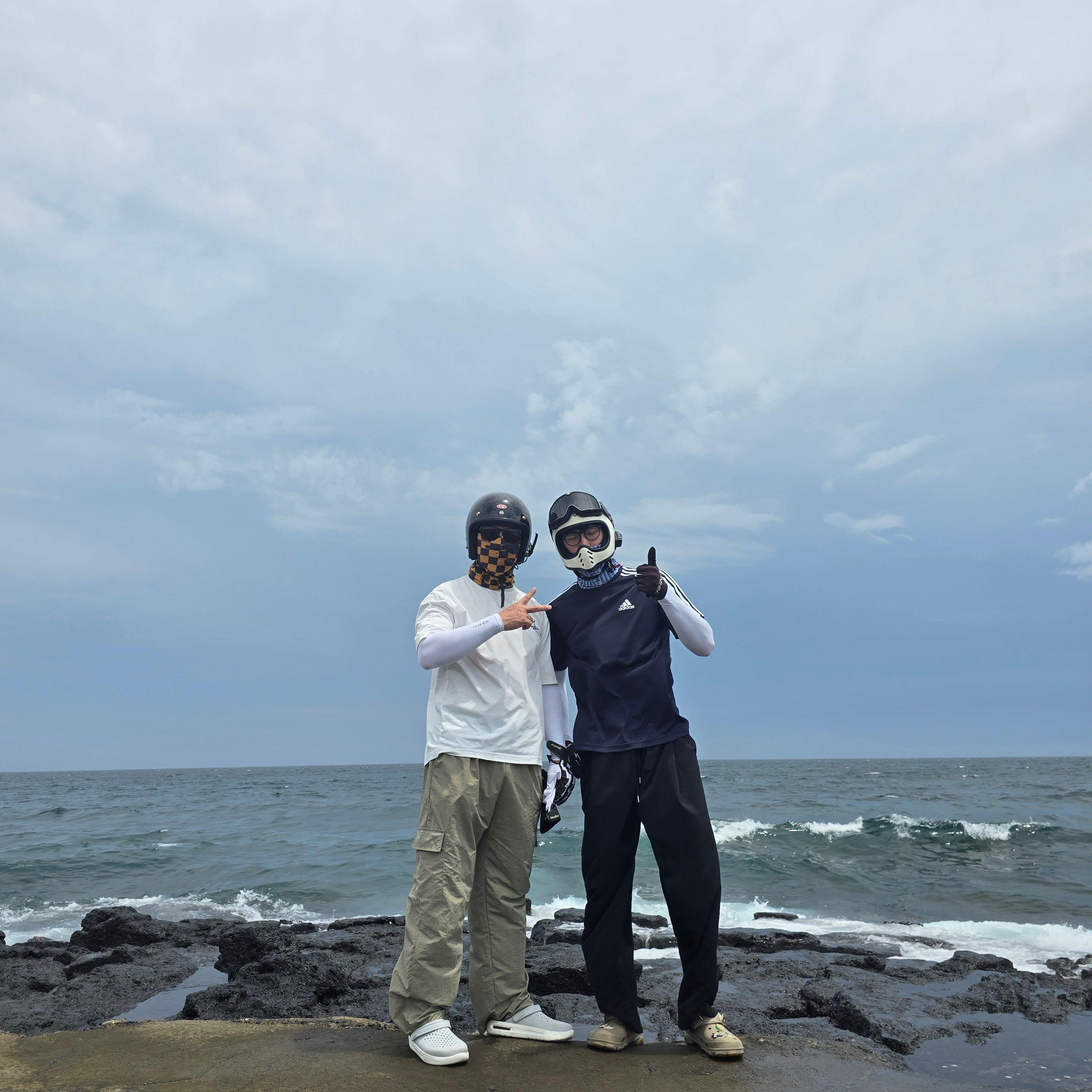 이 방파제는 사진 찍기 정말 좋아요. 바다를 배경으로 스쿠터와 함께 찍으면 ‘여행 감성’ 그 자체예요. 친구들과 헬멧을 벗지 않은 채 찍은 사진도 독특하고, 서로의 모습이 자연스럽게 담겨서 더 좋은 추억이 되었죠. 뒤쪽으로 보이는 파도가 큰 날이면, 역동적인 장면을 담을 수 있어 인생샷 스팟으로 추천해요.